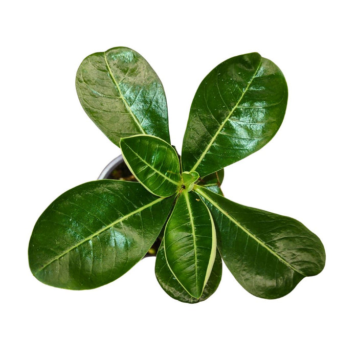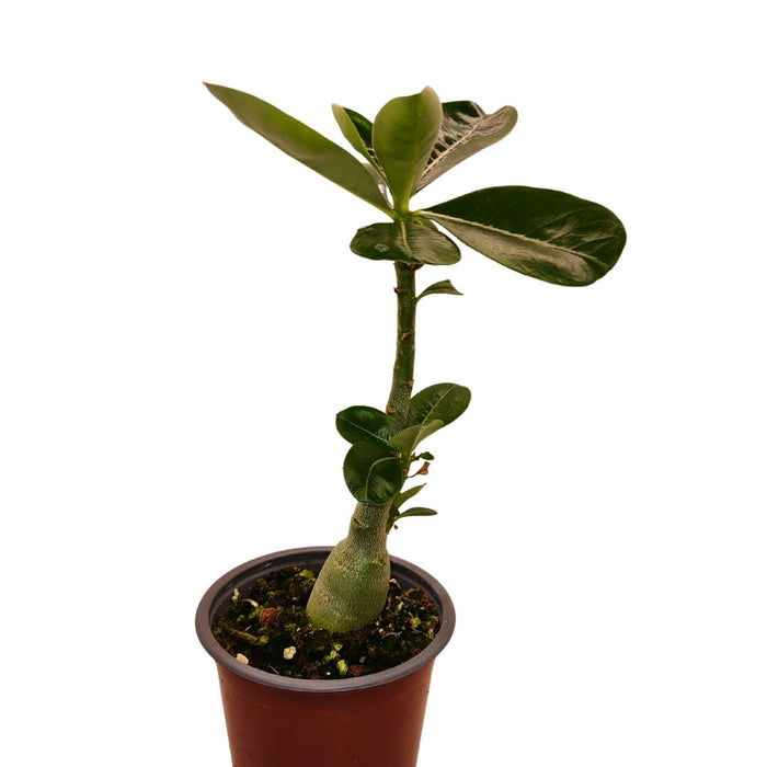Adénium rose du désert est une plante caudex à croissance lente. Elle est souvent utilisée comme bonsaï grâce à son épaisse tronc succulent, feuilles fines et délicates et fleurs pulpeuses rose foncé.