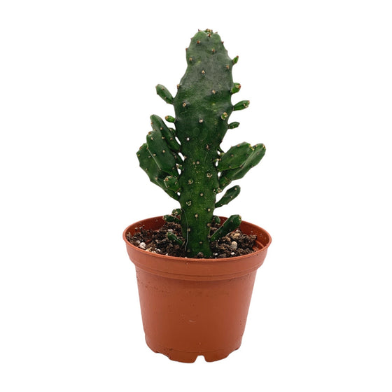 L'Opuntia, l'une des plus grandes familles de cactus, se compose de cactus du désert que l'on trouve partout en Amérique. Ce sont des plantes nécessitant peu d'entretien et peu d'eau. Elles sont également adaptées à un climat très chaud et sec. L'Opuntia monacantha est une variété tordue et monstrueuse du classique cactus à figues de Barbarie, dont la tige est unique et déformée.