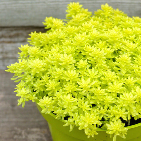 Sedum japonicum ou 'Tokyo Sun', a une petite mer dense et brillante de petits feuillages succulents jaune citron. Ce sedum est plus jaune en plein soleil et un peu plus calcaire dans les endroits moins ensoleillés.