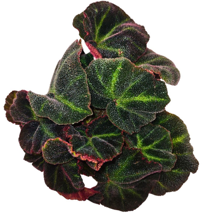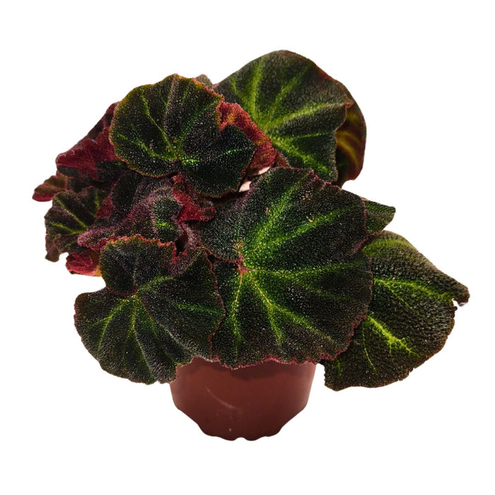 The Begonia soli-mutata is a tropical plant native to Brazil, valued for its spectacular foliage and ease of care indoors. Its name comes from its ability to change color depending on light and humidity. Its leaves are oval, textured, and deep green with prominent veins and a reddish-brown hue that intensifies under bright light. Their slightly velvety texture adds to their appeal. Small white or pink flowers appear during the flowering period, usually in spring or summer.
