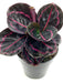 Calathea Dottie is like the gothic cousin of the Calathea family. The leaf surfaces are colored very dark black-green and its midrib beautifully marked with a distinctive bright pink that also encircles the leaf.